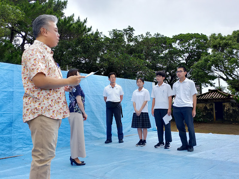 2019年10月31日に正殿など主要7棟が火災で焼失し、その後復興作業が進められている首里城を訪れました。首里城は沖縄の歴史・文化を象徴する城であり、首里城の歴史は琉球王国の歴史そのものといっても過言ではありませんその首里城復興の一助となれるよう本校でも 「首里城復興基金」の取り組みを行いました。そして、本日、その贈呈式が実施されました。