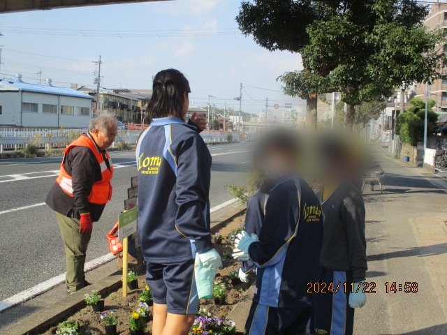 本日午後、地域な方々と本校生徒で花咲ロードの花植えをおこないました。花咲ロードの花壇の整備は事前に地域ボランティアの方々がおこなってくださいました。ありがとうございました。